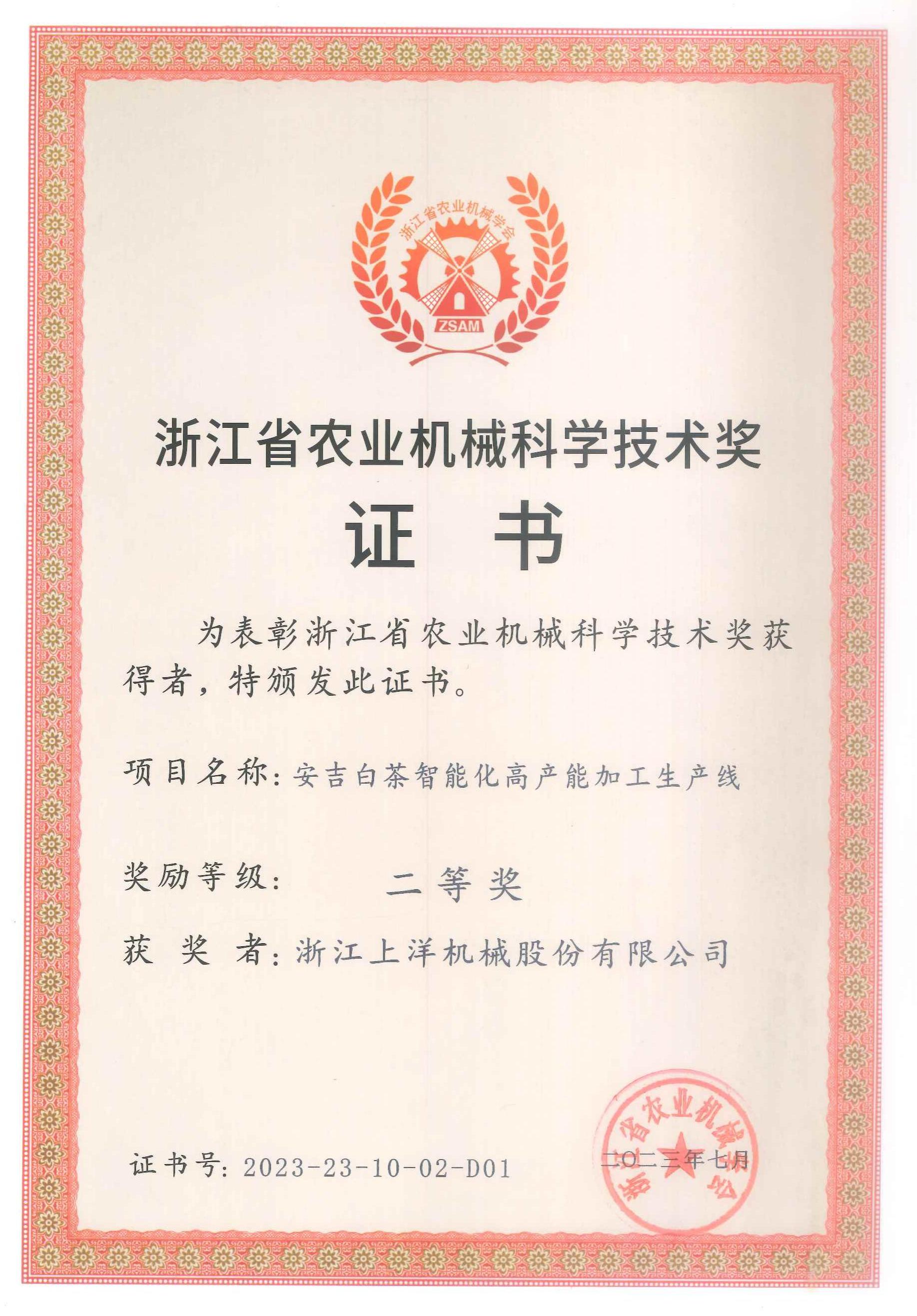 2023年浙江省農(nóng)業(yè)機(jī)械科學(xué)技術(shù)獎二等獎