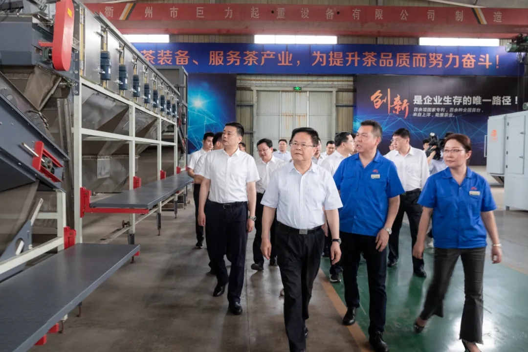 11月30日,中國國際茶文化研究會副會長丁世明、衢州市政協(xié)副主席琚建軍、中國農(nóng)業(yè)科學院茶葉研究所研究員魯成銀等專家領導一行蒞臨上洋機械現(xiàn)場考察,一起為衢州百億茶產(chǎn)業(yè)發(fā)展把脈問診,共話"三茶統(tǒng)籌"發(fā)展新機遇。